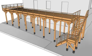- ContenuVues en 3D, Plans de structure, Plans d'implantation des plots, Plans de détails de réalisation, Liste de matériaux, Animation en 3D de votre future terrasse, Assistance téléphonique