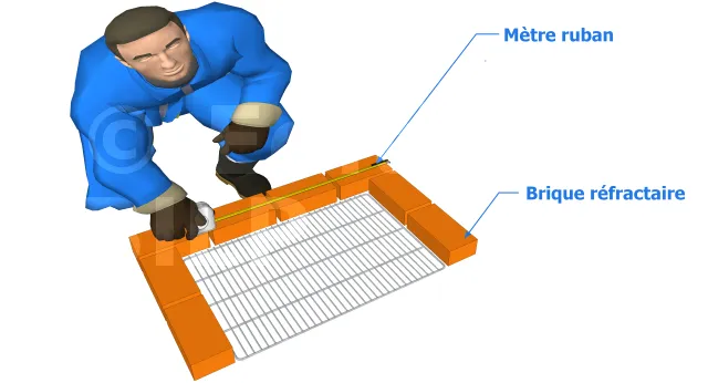 - Disposer les briques réfractaires au sol de sorte à réaliser un rectangle pour le support de la grille
