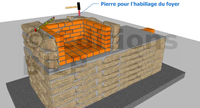 Pour une meilleure apparence, vous pourrez employer vos plus belles pierres pour la réalisation de la dernière rangée au-dessous du foyer.