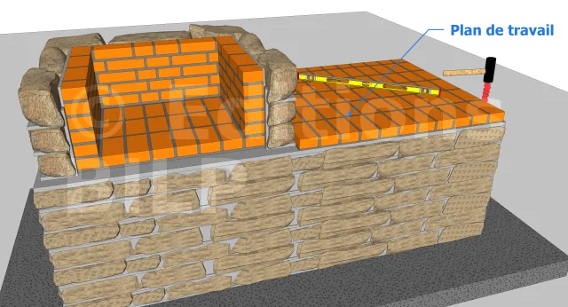 Pour leur habillage, vous devrez avoir recours aux mêmes pierres que pour la réalisation de la base du barbecue pour garder son homogénéité. Pour ce faire, vous aller étaler un peu de mortier sur les briques avant d’y poser les pierres en les tapotant avec le maillet pour bien les y incruster. Par la suite, vous allez les monter comme pour les étapes précédentes tout en vous assurant de leur verticalité et de leur planéité jusqu’à ce qu’à couvrir entièrement le foyer.