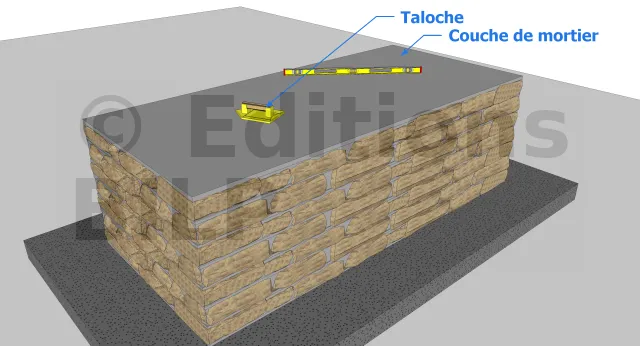 Pour l’égaliser, il vous faudra y étaler une couche de mortier, la lisser et la rendre le plus homogène possible grâce à une taloche.