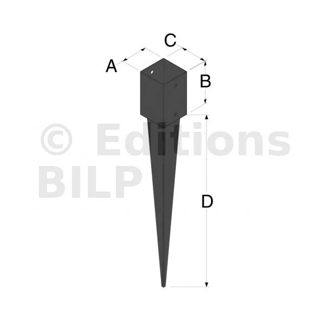 Pied de poteau carré à enfoncer - Finition NOIRE - Réf. PPJNET70/620
