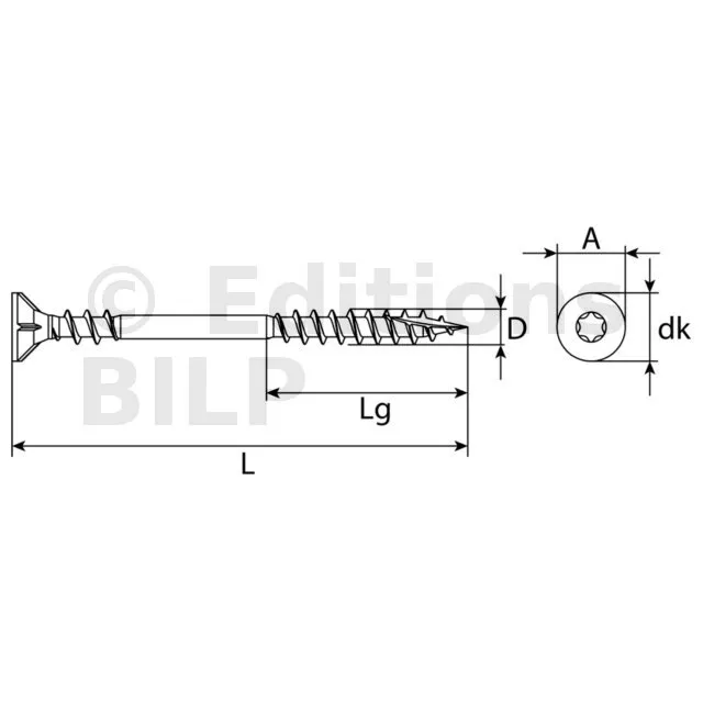 Tête fraisée avec crans de fraisage | Noyage affleurant de la tête de vis, Noyage facile et net de la tête de vis, La longueur utile correspond à la longueur totale de la vis | Aspect parfait, Nécessite moins de force et d’énergie |