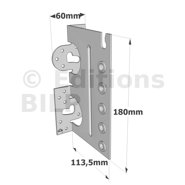 Porté : - Broches Inox Ø10 mm (longueur à préciser suivant épaisseur du bois).