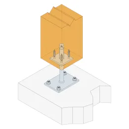 Ce modèle de pied de poteau est réglable en hauteur. Simple et rapide à installer, il peut être réglé sur le chantier.