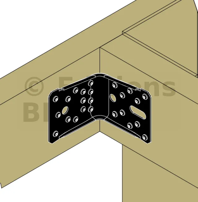 Connexion bois/bois type poutre/poutre - Assemblage avec 2 équerres