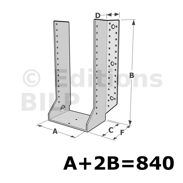 Grands sabots à ailes extérieures, gamme GSE CLASSIQUE (épaisseur 4mm, profondeur 110mm) - Réf. GSE840/4X-AL