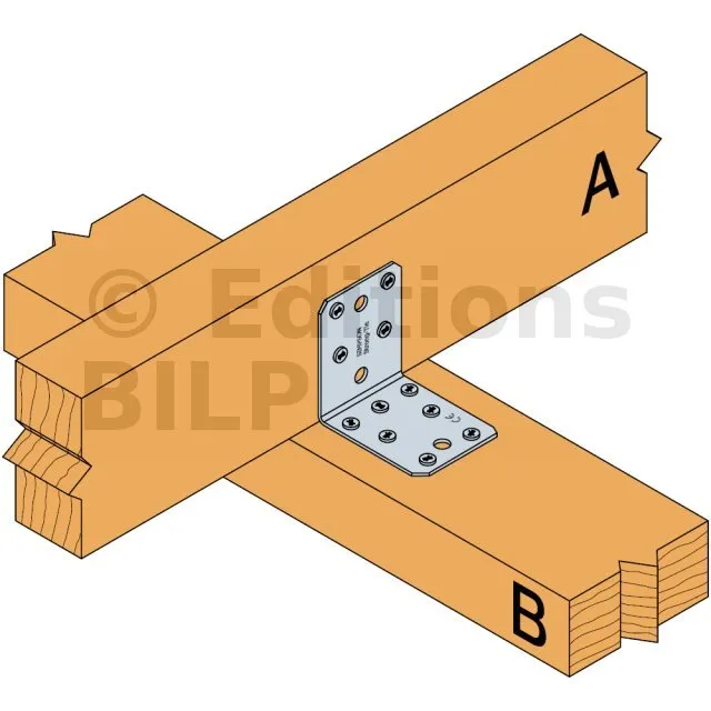 - Fixation BOIS/BOIS - clouage totalAile A : 4 ; Aile B : 6 ; type : Pointes annelées CNA Ø4.0x35 ou Ø4.0x40 ou Ø4.0x50 ou Ø4.0x60 mm, Vis CSA Ø5.0x35 ou CSA Ø5.0x40