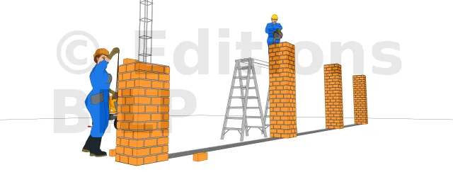 - Posez les briques de la même manière que pour la première rangée, sans oublier de vérifier l’alignement et de prendre l’aplomb.