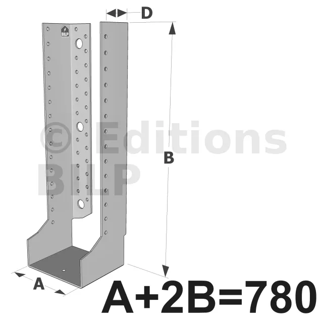 Grands sabots à ailes intérieures, gamme GLI ECONOMIQUE (développé 780mm, épaisseur 2.5mm, profondeur 90mm) - Réf. GLI780/2.5X-AL