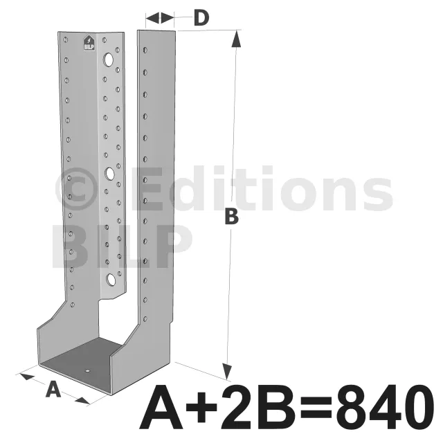 Grands sabots à ailes intérieures, gamme GLI ECONOMIQUE (développé 840mm, épaisseur 2.5mm, profondeur 90mm) - Réf. GLI840/2.5X-AL