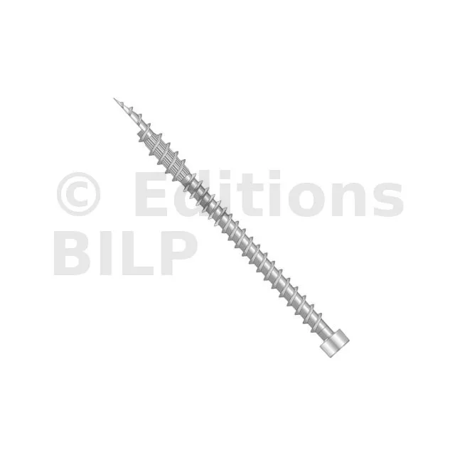 - Tête cylindrique : diminue l’éclatement du bois et rend la fixation invisible dans le bois,