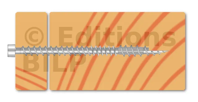 - Une vis dont l’axe est de 45 à 90° du fil du bois dans le cas des ESCR(XXX), et à 90° du fil du bois pour les autres vis.