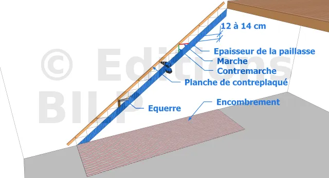 - Au-dessus des tracés et parallèlement à la paillasse, vous allez fixer une planche de contreplaqué pour vous faciliter les taches à venir.