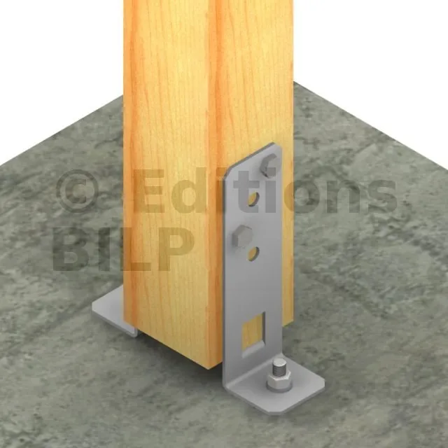 1. Fixer le poteau à 2 ou 4 pieds de poteaux à l’aide des fixations choisies,