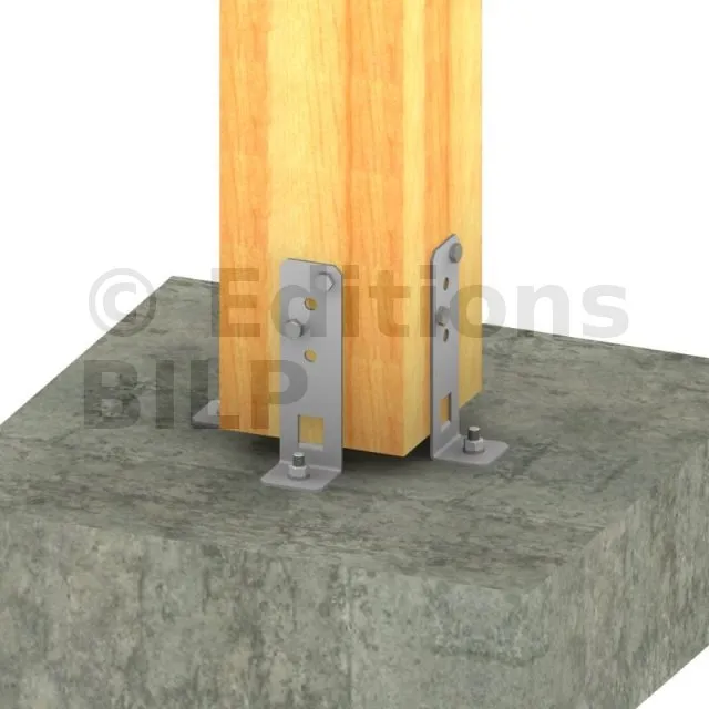 L’installation de deux pieds de poteau est nécessaire pour des sections de poteaux carrés jusqu’à 150x150 mm. Pour des sections plus importantes (250x250 maximum), l‘utilisation de 4 pieds par poteau est préconisée.