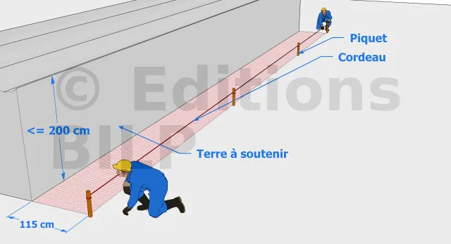 Cette opération vous permettra de mesurer et de connaître la longueur réelle de votre mur de soutènement et de déterminer avec précision les matériaux qu’il vous faudra pour mener à terme votre chantier.