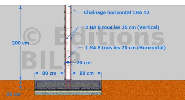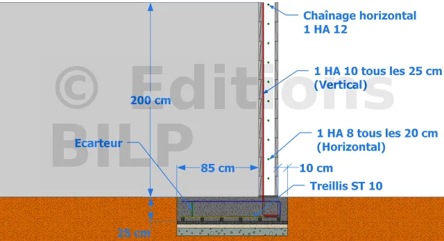 | Armature des semelles | Armatures utilisées | Quantité par ml de mur |