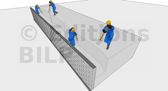 La mise en oeuvre du remblayage pour le mur en blocs à bancher est similaire à celui du mur en paroi préfabriquée.