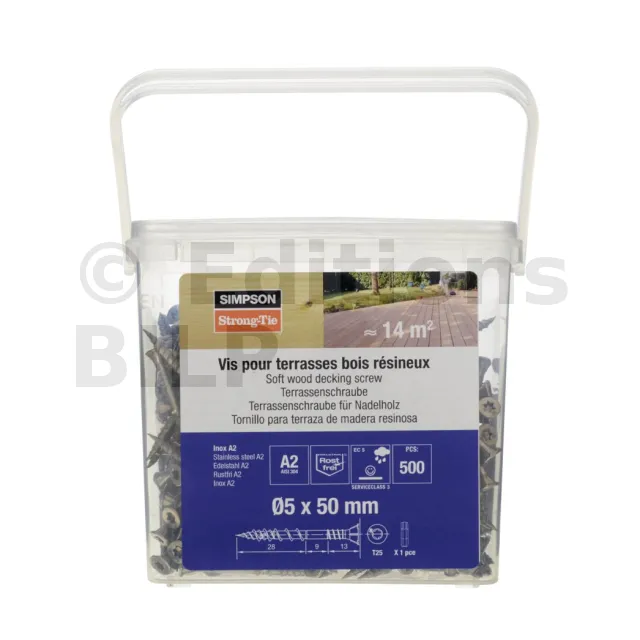 *Surface réalisable avec une boîte de vis, sur la base de lames de largeur 120 mm et un espacement de lambourdes 500 mm, environ 35 vis / m²