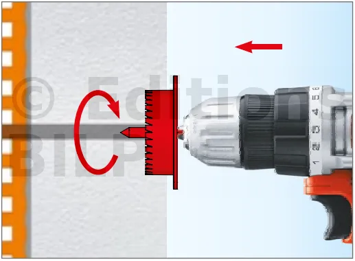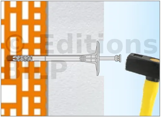 - Enfoncer le corps de la fixation de manière à ce que la rondelle de fixation soit orientée vers le matériau d’isolation thermique.