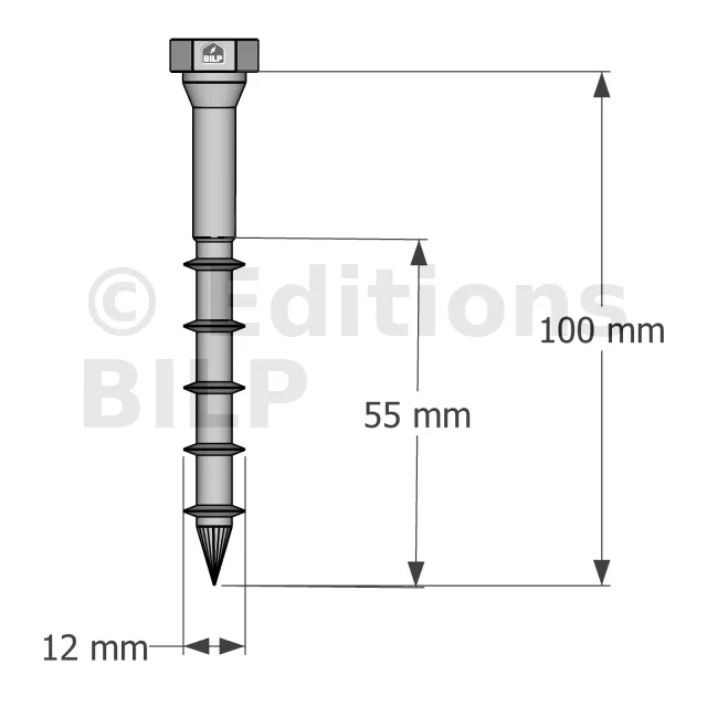 - Marquage de la tête incluant la longueur en mm facilitant le contrôle,