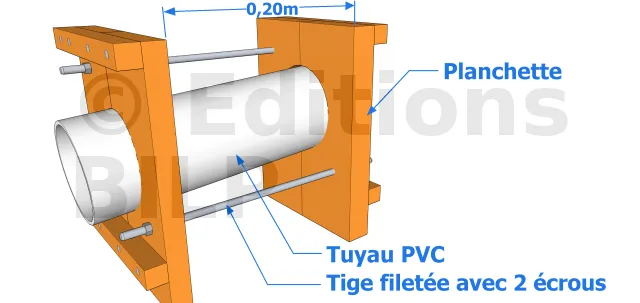 La technique est très simple, en effet, il suffit d’assembler 2 planchettes que l’on troue pour l’emplacement du tuyau PVC et des tiges. Puis, placez et fixez les panneaux sur l’emplacement de la barbacane en serrant les écrous sur les tiges.