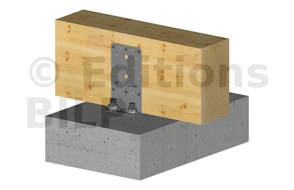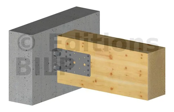 Referez vous à la gamme d’ancrages Simpson Strong-Tie pour les ancrages adaptés. Les solutions classiques sont BOAXII, SET-XP, WA, AT-HP, en fonction du type de béton, espacement et distances aux bords.