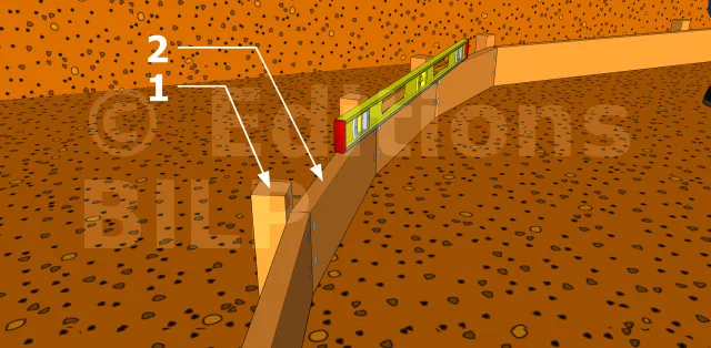 Le coffrage sera composé de planches(2) et de chevrons pour les buttages(1).