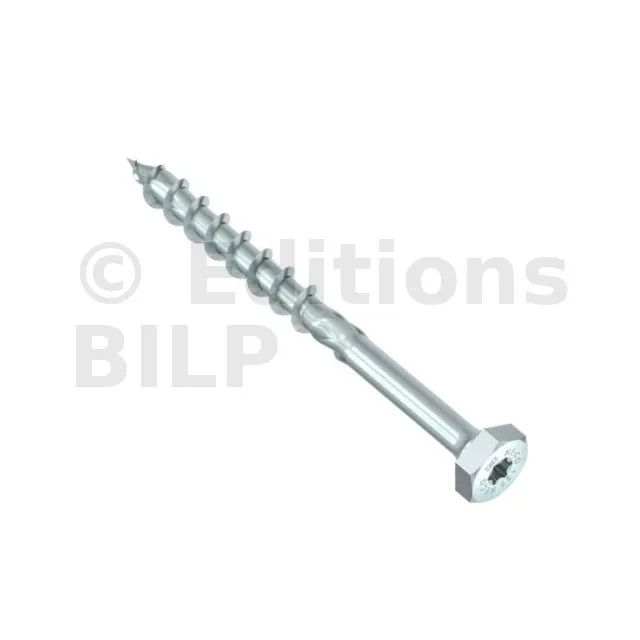 HECO-TOPIX-plus, tête hexagonale combinée, tête hexagonale + T-Drive, filet partiel, zingué blanc, A3K - Réf. 61504