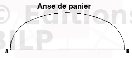 L’anse de panier est une approximation d’une demi-ellipse par un nombre impair de cercles. Pour avoir une belle courbe, ces cercles doivent avoir la même tangente au point de raccordement.