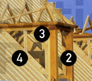 2- lucarne / 3- jouée / 4- noulet