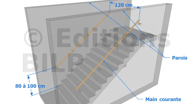 - La largeur entre deux mains courantes doit être de 1,20 m.