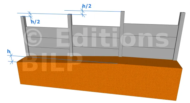 Par la suite, il vous faudra mesurer le dénivelé total de la clôture. Puis, la pose de chaque poteau devra tenir compte de la hauteur de dénivelé « h » au niveau de chacun des poteaux avant de procéder à la pose. Il est recommandé de terrasser horizontalement en partant du poteau le plus bas.