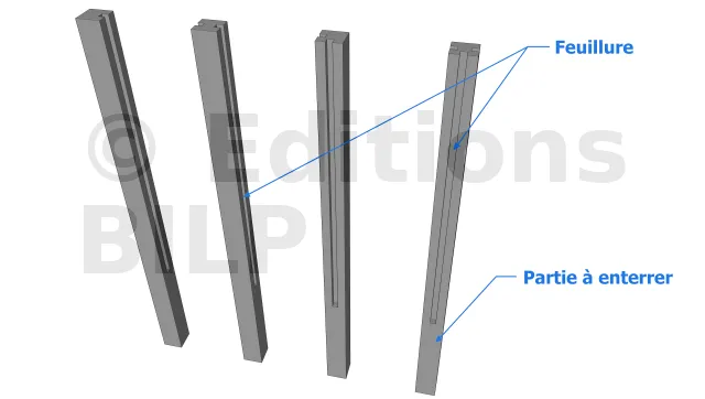 Pour des raisons esthétiques, si une seule plaque de béton doit s’appuyer sur un poteau, il est plus judicieux d’éviter un poteau avec deux saignées.