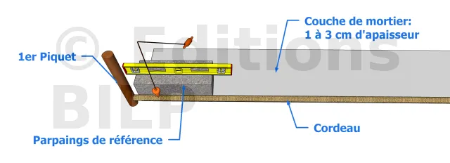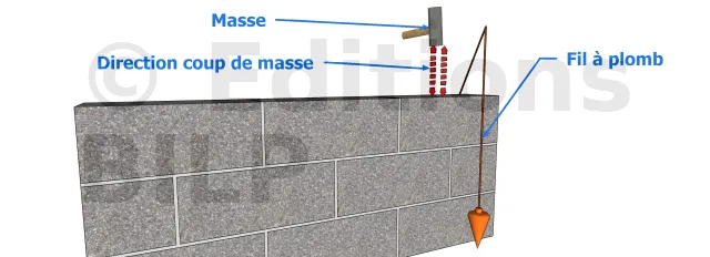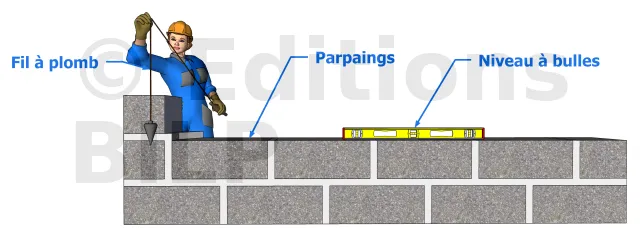 Si le premier parpaing présente une erreur au niveau de l’aplomb, de la perpendicularité ou de l’horizontalité, le reste présentera les mêmes erreurs.
