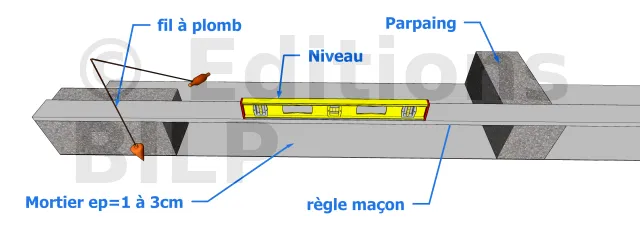 A chaque assise, il faut faire quelques vérifications pour éviter d’éventuelles inclinaisons (ou bombements) et afin d’assurer une parfaire esthétique de l’ouvrage.