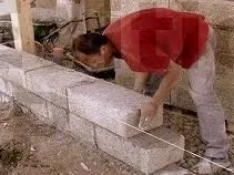 - On tire le cordeau d’un piquet à un autre, comme pour les briques. On tend le cordeau entre les parpaings extrêmes et on aligne les parpaings intermédiaires et ainsi de suite.