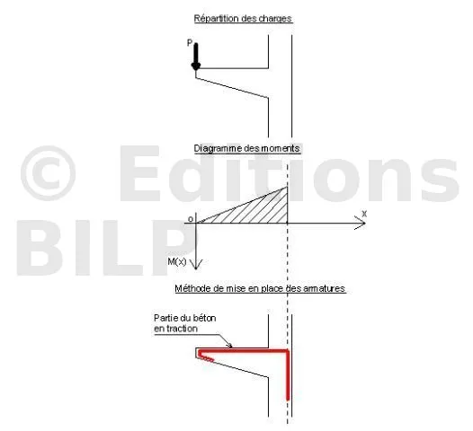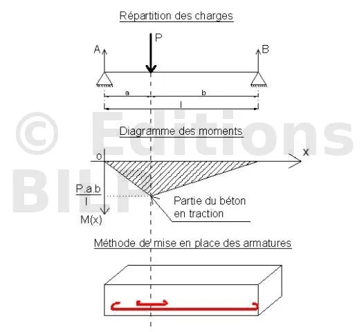 Si par convention en RDM, le diagramme du moment fléchissant se situe dans les parties tendues, la mise en place des armatures principales pourrait se faire sans risque de commettre d’erreur grossière.