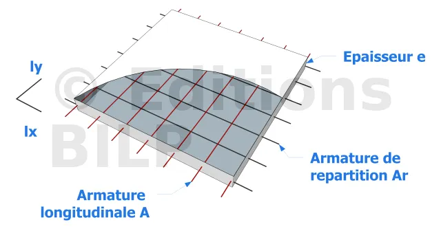 Si e est l’épaisseur de la dalle (et plus généralement une plaque en béton armé) et