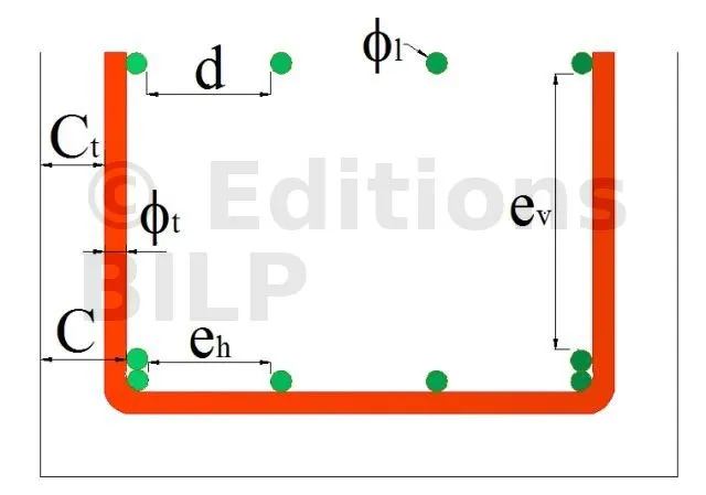 - Enrobage de toute armature (C ou Ct) la distance de la génératrice de la barre au parement du béton le plus voisin ;
