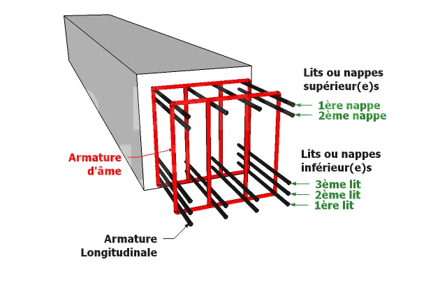 Les armatures dites longitudinales sont toujours disposés en nappes horizontales (ou lit horizontal) et en fil vertical.