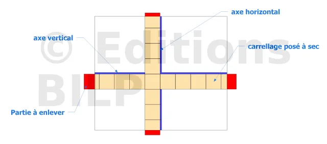 La pose de ces dalles ou du carrelage se fera ensuite autour des deux axes. Cela vous permettra d’avoir une répartition harmonieuse des dalles. Ce sera de part et d’autre de ces axes que se fera la pose des dalles.