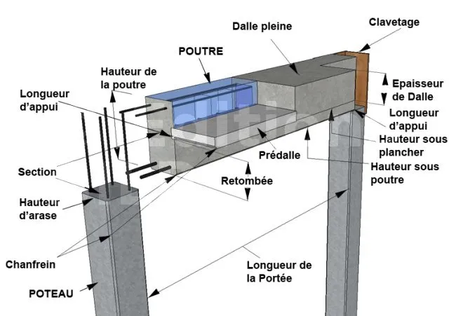 Distance de la poutre prise entre les deux éléments qui la soutiennent.