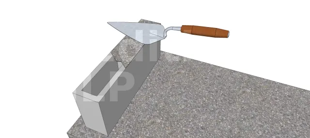 Pour réaliser le jointoiement des divers éléments, il faut répandre un peu de mortier puis positionner l’élément à sceller. Posez ensuite des cales pour bien régler les niveaux. Une fois que la pièce est parfaitement positionnée, il suffit de quelques petits coups de marteaux pour la ventouser au mortier.