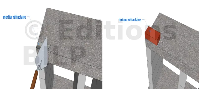 Etant donné que votre foyer doit supporter des températures élevées, il ne faut pas choisir des briques traditionnelles car elles peuvent éclater quand la température devient excessive. Vous devez vous servir de briques réfractaires pouvant supporter des températures élevées (dans les 1500°C) pour la base du foyer et ses contours. Par contre, vous pouvez choisir les matériaux classiques pour le socle du barbecue. Il est évident que les briques réfractaires ne s’assemblent pas avec un mortier classique. Ce dernier ne peut pas en effet supporter des températures élevées. Il faut se servir de mortier réfractaire qui est vendu en sac de 30 kg dans le commerce.