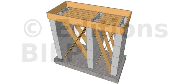 Pour commencer, il faut poser la première planche sur une surface plane. Il faut ensuite couper des morceaux dans du contre-plaqué qui seront cloués sur les arêtes pour réaliser un réceptacle étanche. Puis, il faut poser du fer à béton sur la planche et clouer de nouveau une seconde planche de coffrage en guise de couvercle. Le coffrage étant réalisé, il ne vous reste plus qu’à couler le béton.