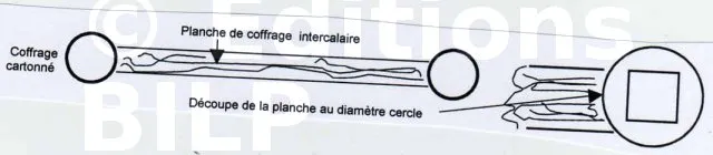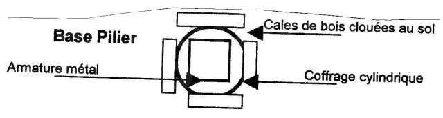 Veillez à ce que la base de vos coffrages cylindriques soit bien bridés, à l’aide de cales bois et de pointes acier. ( Voir croquis )