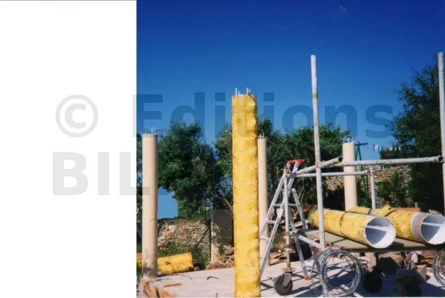 Coulage des 5 piliers, après s’être assuré du parfait aplomb ,et de leur parfaite stabilité, ainsi répétez l’opération pour les 3 autres. Mettre des chandelles supplémentaires si nécessaire, avant