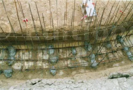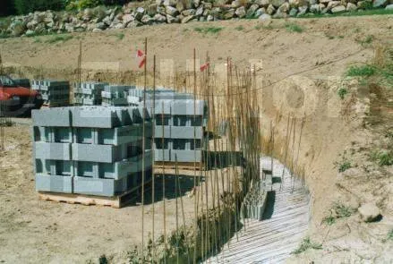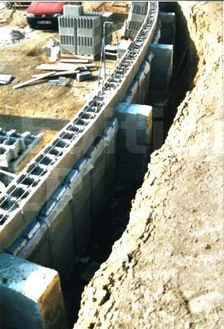 Le ferraillage est un autre point cruciale. La semelle reçoit un ferraillage très conséquent. La semelle doit être solidaire du mur. Au coulage de la semelle, des fers en attente doivent être prévus. On enfiche les bloc par dessus ensuite.